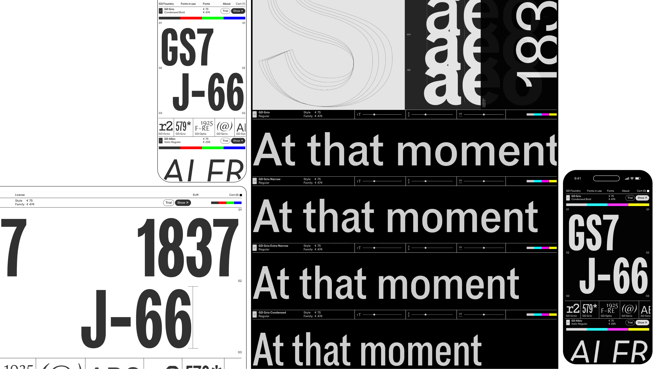GD Foundry is our own platform where we can share our passion for typefaces and typography with our peers. The whole project is built upon one unifying principle: Simplicity. Simplicity when it comes to the visual expression, where we striped down the visual language down to its essential components: type, grid, and proportion. Highlighting the craftsmanship of every typeface, without obscuring it with frivolous design elements or overly complicated layouts. Simplicity when it comes to the typography itself, where at its core sits a uniwidth type system where every character retains the same width across all weights, ensuring stability at every scale.