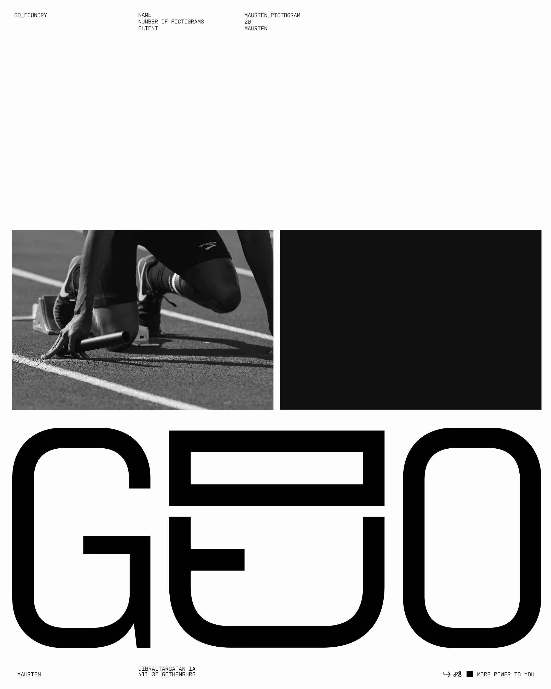 To complement Maurten’s custom type system, we developed a tailored set of pictograms built on the same design logic as their bespoke monospace typeface. The goal was to create a cohesive icon system that integrates seamlessly with text and reflects the brand’s technical, minimalist aesthetic. Each icon was crafted with precision, using the geometry and angles of Maurten Mono as a foundation. Special attention was given to sport-specific symbols like the runner and cyclist — exploring variations in posture, speed, and distance to ensure recognizability across disciplines.