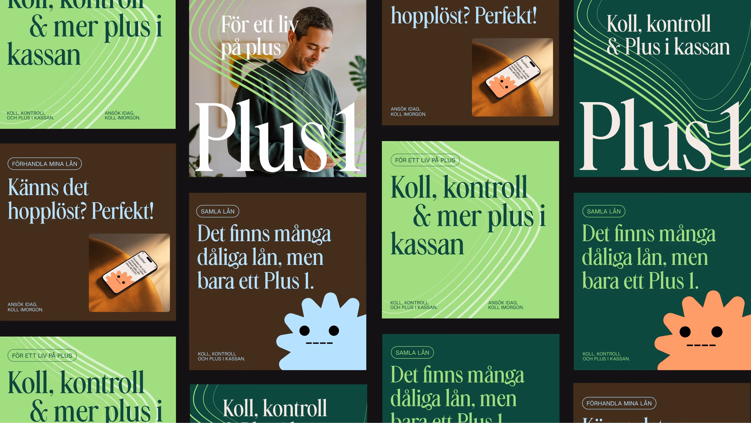Together, the typography, imagery and graphic system create an identity that feels approachable, supportive and optimistic – reflecting how Plus1 helps people regain control of their financial situation.